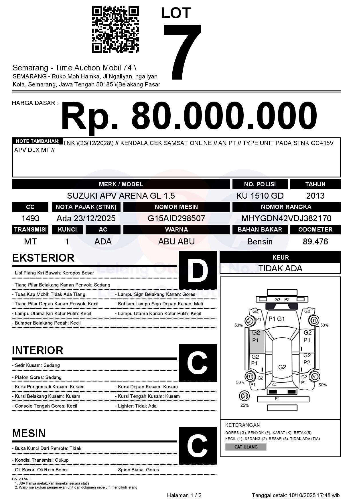 - Kondisi objek lelang dilelang apa adanya, baik kondisi fisik, mesin maupun legalitas kendaraan. Jika terdapat kekurangan/cacat baik yang terlihat maupun yang tidak terlihat, maka semua akan menjadi tanggung jawab/risiko Pemenang Lelang. Oleh karena itu, Pemenang Lelang melepaskan segala hak untuk menuntut dan/atau meminta ganti rugi atas hal tersebut kepada JBA.