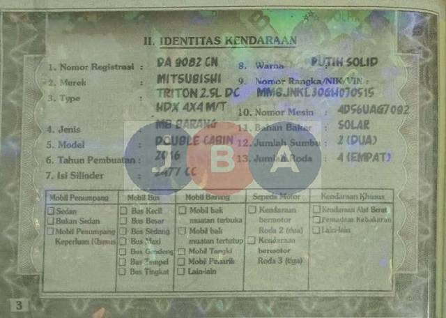MITSUBISHI TRITON 2.5L DC HDX PUTIH SOLID 2016