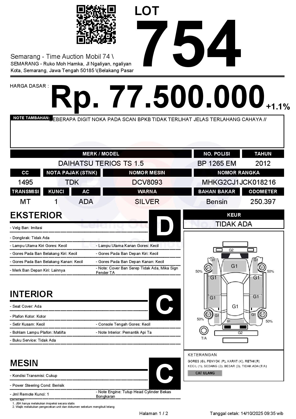 - Pemenang Lelang wajib melunasi total harga terbentuk sebelum batas waktu pelunasan.