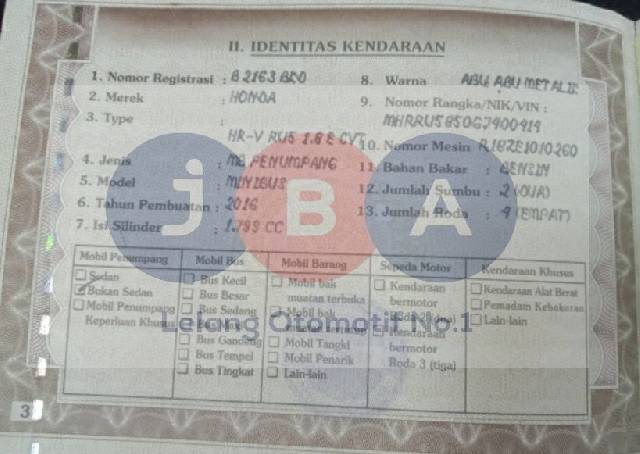 HONDA HRV RU5 1.8 E CVT CKD ABU ABU METALIK 2016