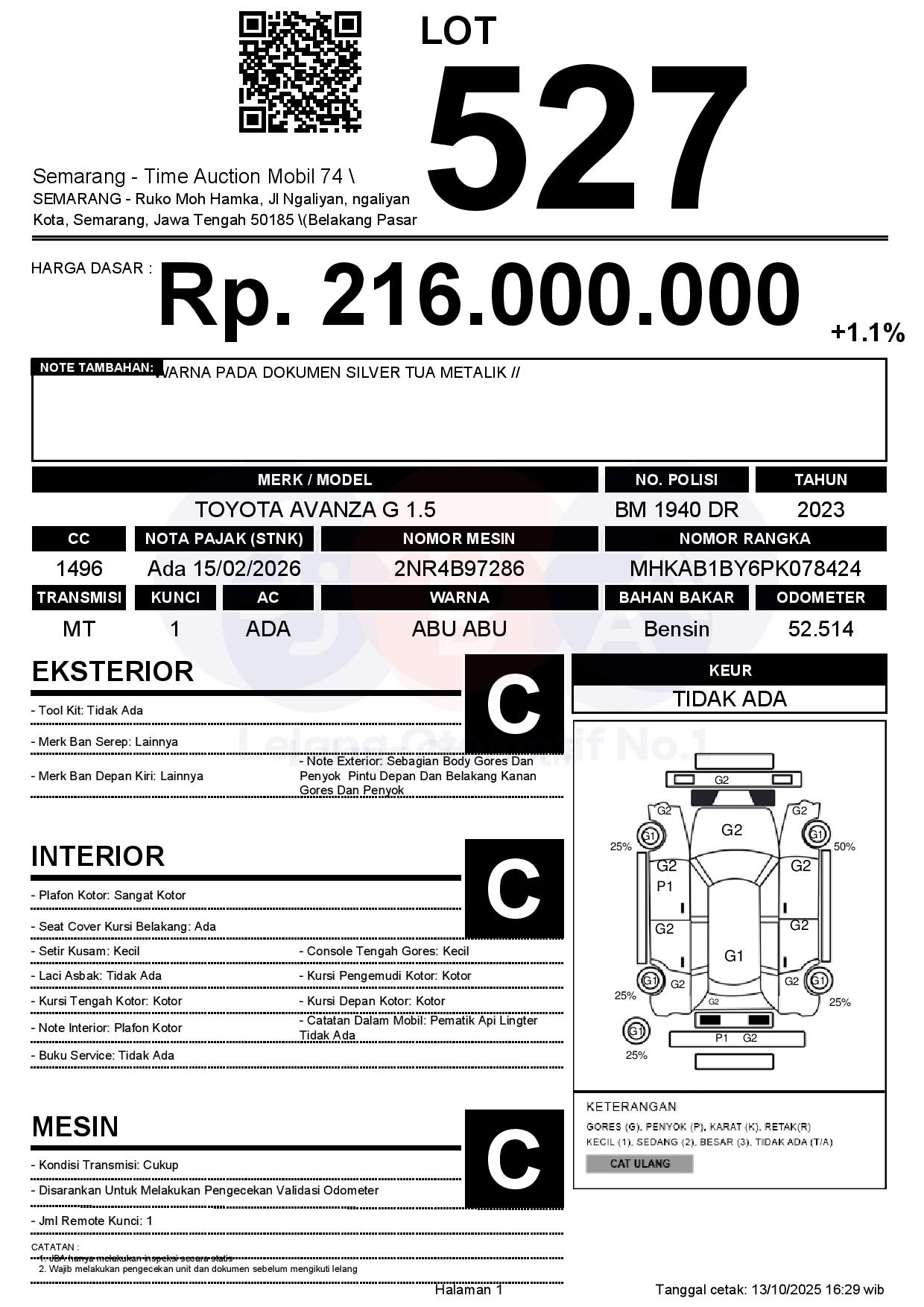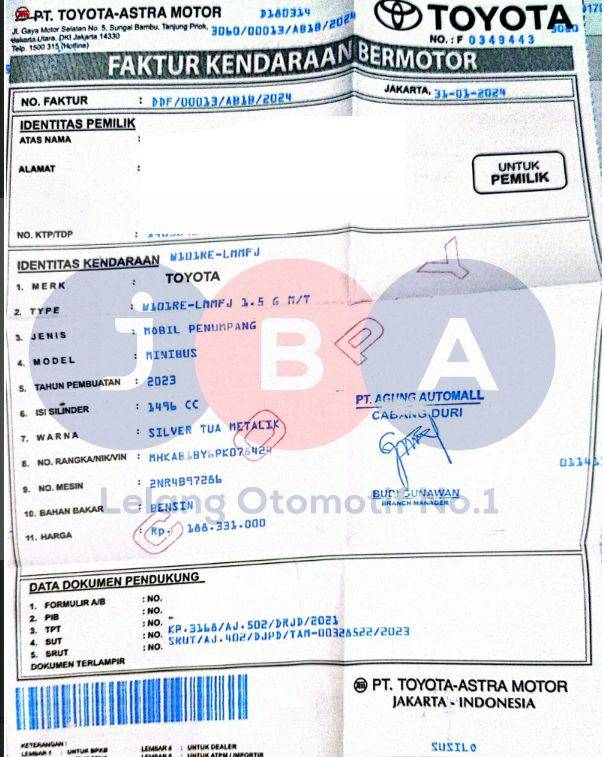 - Kondisi objek lelang dilelang apa adanya, baik kondisi fisik, mesin maupun legalitas kendaraan. Jika terdapat kekurangan/cacat baik yang terlihat maupun yang tidak terlihat, maka semua akan menjadi tanggung jawab/risiko Pemenang Lelang. Oleh karena itu, Pemenang Lelang melepaskan segala hak untuk menuntut dan/atau meminta ganti rugi atas hal tersebut kepada JBA.