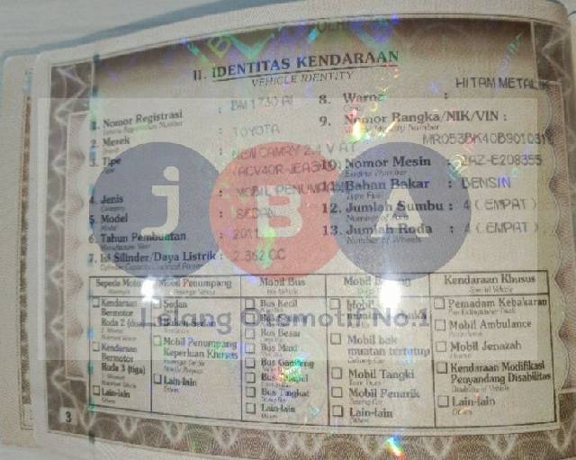 - Kondisi objek lelang dilelang apa adanya, baik kondisi fisik, mesin maupun legalitas kendaraan. Jika terdapat kekurangan/cacat baik yang terlihat maupun yang tidak terlihat, maka semua akan menjadi tanggung jawab/risiko Pemenang Lelang. Oleh karena itu, Pemenang Lelang melepaskan segala hak untuk menuntut dan/atau meminta ganti rugi atas hal tersebut kepada JBA.