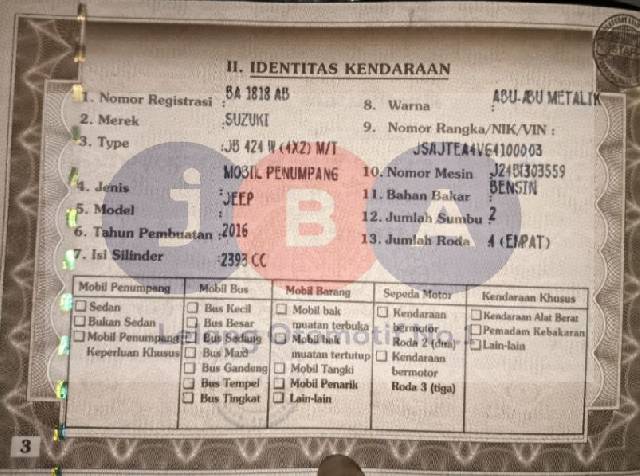 - Kondisi objek lelang dilelang apa adanya, baik kondisi fisik, mesin maupun legalitas kendaraan. Jika terdapat kekurangan/cacat baik yang terlihat maupun yang tidak terlihat, maka semua akan menjadi tanggung jawab/risiko Pemenang Lelang. Oleh karena itu, Pemenang Lelang melepaskan segala hak untuk menuntut dan/atau meminta ganti rugi atas hal tersebut kepada JBA.