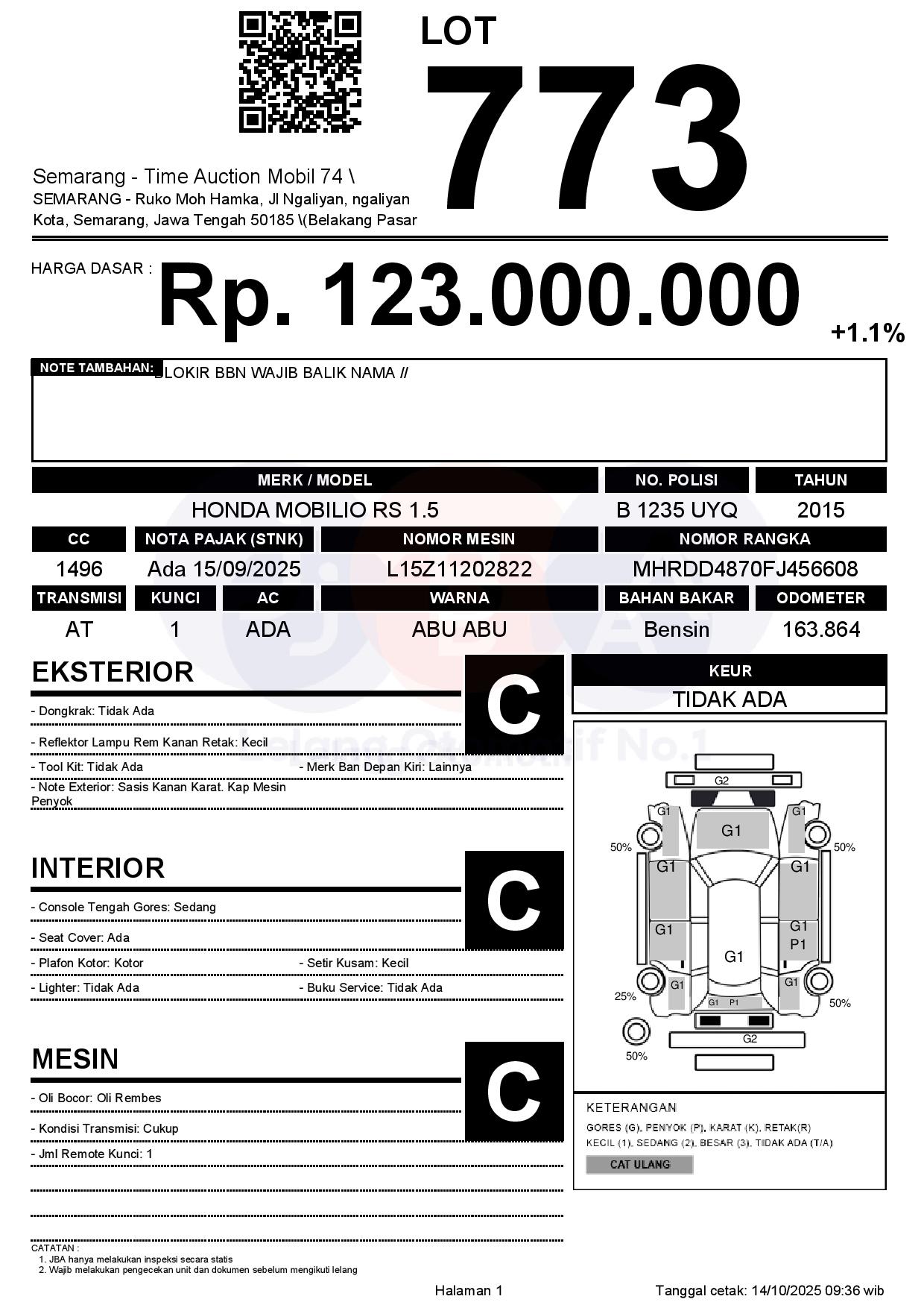 - Kondisi objek lelang dilelang apa adanya, baik kondisi fisik, mesin maupun legalitas kendaraan. Jika terdapat kekurangan/cacat baik yang terlihat maupun yang tidak terlihat, maka semua akan menjadi tanggung jawab/risiko Pemenang Lelang. Oleh karena itu, Pemenang Lelang melepaskan segala hak untuk menuntut dan/atau meminta ganti rugi atas hal tersebut kepada JBA.