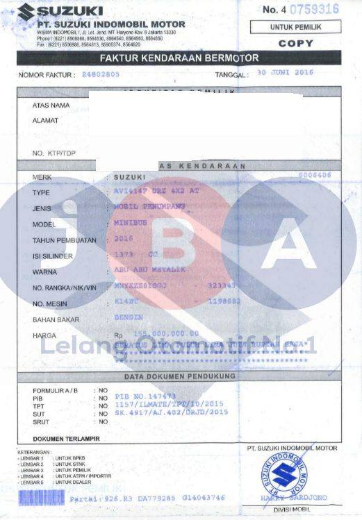 - Biaya pemindahan objek lelang dan pengurusan balik nama pada dokumen kepemilikan merupakan tanggung jawab dan beban dari Pemenang Lelang.