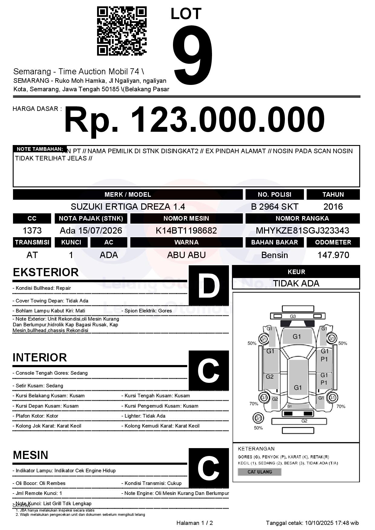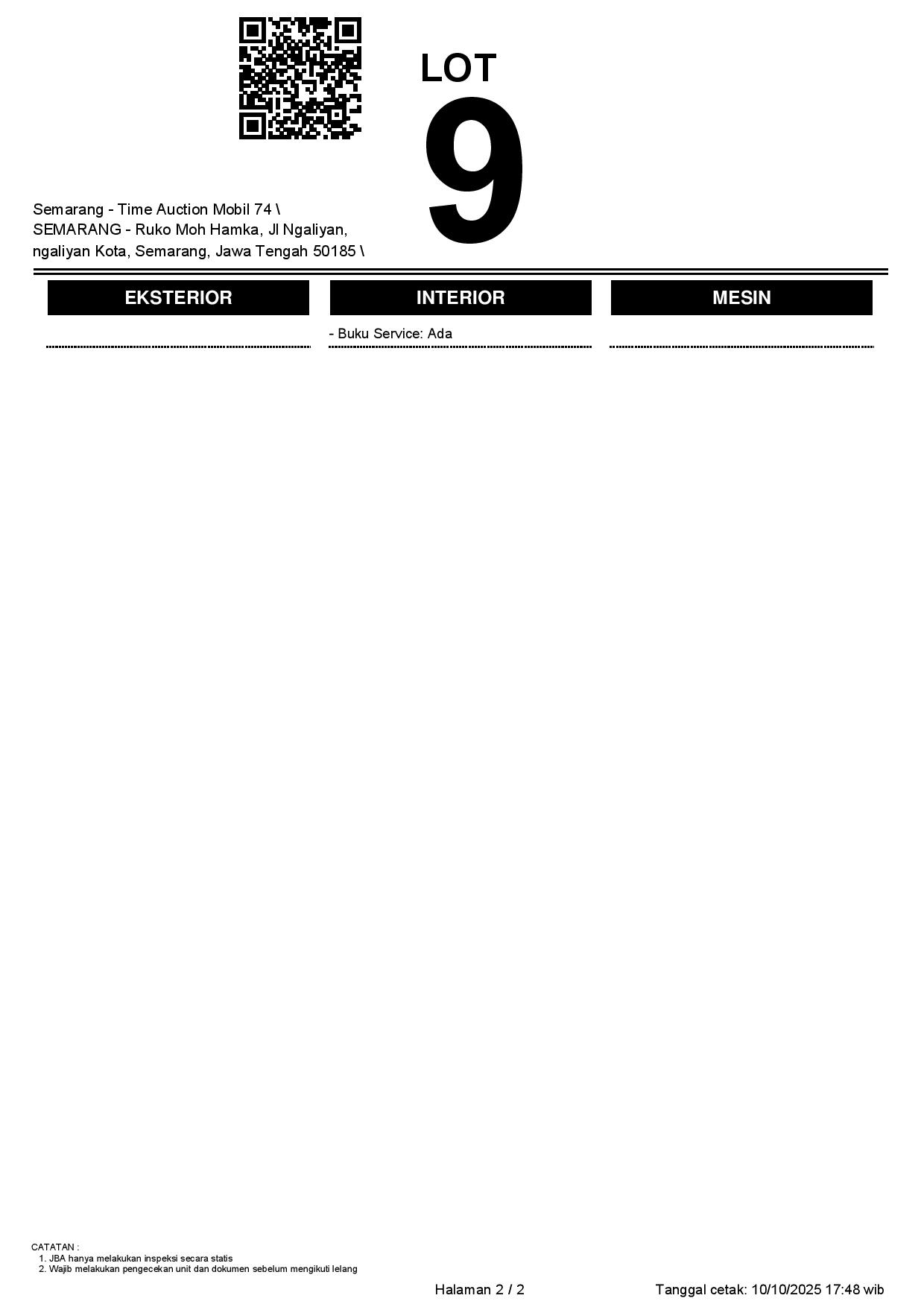 - Kondisi objek lelang dilelang apa adanya, baik kondisi fisik, mesin maupun legalitas kendaraan. Jika terdapat kekurangan/cacat baik yang terlihat maupun yang tidak terlihat, maka semua akan menjadi tanggung jawab/risiko Pemenang Lelang. Oleh karena itu, Pemenang Lelang melepaskan segala hak untuk menuntut dan/atau meminta ganti rugi atas hal tersebut kepada JBA.