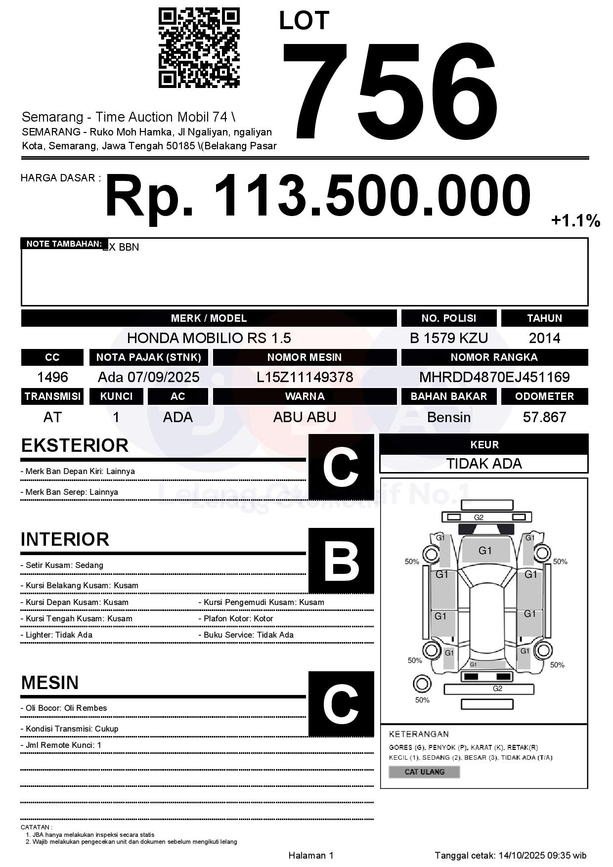 - Kondisi objek lelang dilelang apa adanya, baik kondisi fisik, mesin maupun legalitas kendaraan. Jika terdapat kekurangan/cacat baik yang terlihat maupun yang tidak terlihat, maka semua akan menjadi tanggung jawab/risiko Pemenang Lelang. Oleh karena itu, Pemenang Lelang melepaskan segala hak untuk menuntut dan/atau meminta ganti rugi atas hal tersebut kepada JBA.