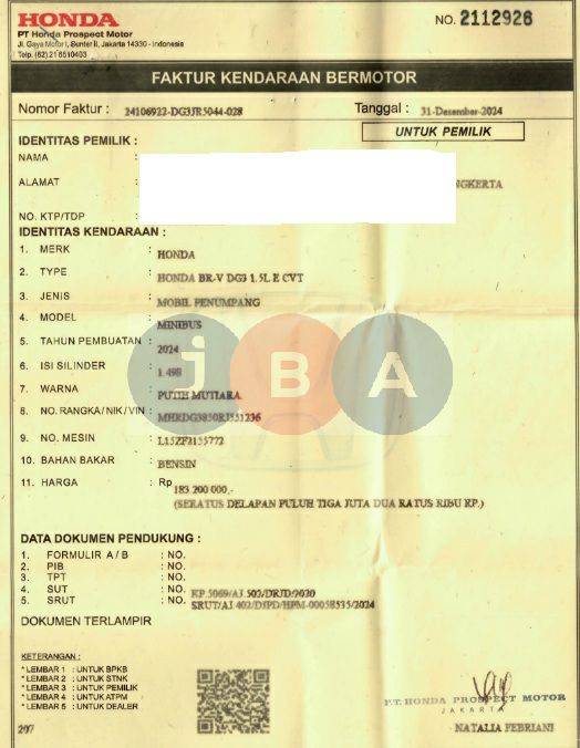 - Atas Nama : PT JBA INDONESIA