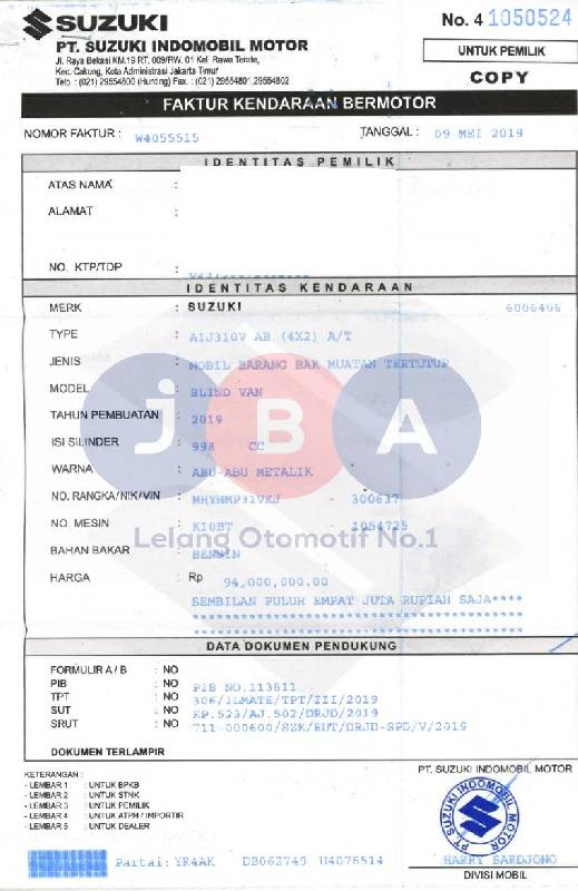- Dokumen kepemilikan akan diserahkan kepada Pemenang Lelang sesuai dengan jadwal yang tercantum dalam katalog objek lelang, dan Berita Acara Pemenang Lelang (BAPL) akan diberikan oleh JBA kepada Pemenang Lelang setelah pembayaran harga terbentuk atau pada saat pengambilan unit objek lelang.