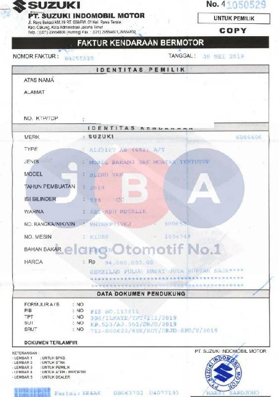- Kondisi objek lelang dilelang apa adanya, baik kondisi fisik, mesin maupun legalitas kendaraan. Jika terdapat kekurangan/cacat baik yang terlihat maupun yang tidak terlihat, maka semua akan menjadi tanggung jawab/risiko Pemenang Lelang. Oleh karena itu, Pemenang Lelang melepaskan segala hak untuk menuntut dan/atau meminta ganti rugi atas hal tersebut kepada JBA.