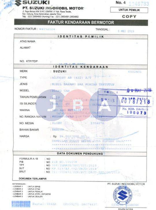 - Dokumen kepemilikan akan diserahkan kepada Pemenang Lelang sesuai dengan jadwal yang tercantum dalam katalog objek lelang, dan Berita Acara Pemenang Lelang (BAPL) akan diberikan oleh JBA kepada Pemenang Lelang setelah pembayaran harga terbentuk atau pada saat pengambilan unit objek lelang.