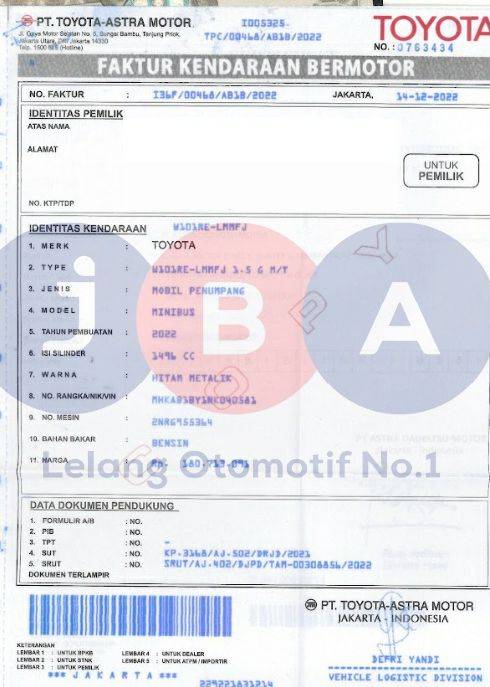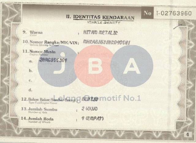 - Kondisi objek lelang dilelang apa adanya, baik kondisi fisik, mesin maupun legalitas kendaraan. Jika terdapat kekurangan/cacat baik yang terlihat maupun yang tidak terlihat, maka semua akan menjadi tanggung jawab/risiko Pemenang Lelang. Oleh karena itu, Pemenang Lelang melepaskan segala hak untuk menuntut dan/atau meminta ganti rugi atas hal tersebut kepada JBA.