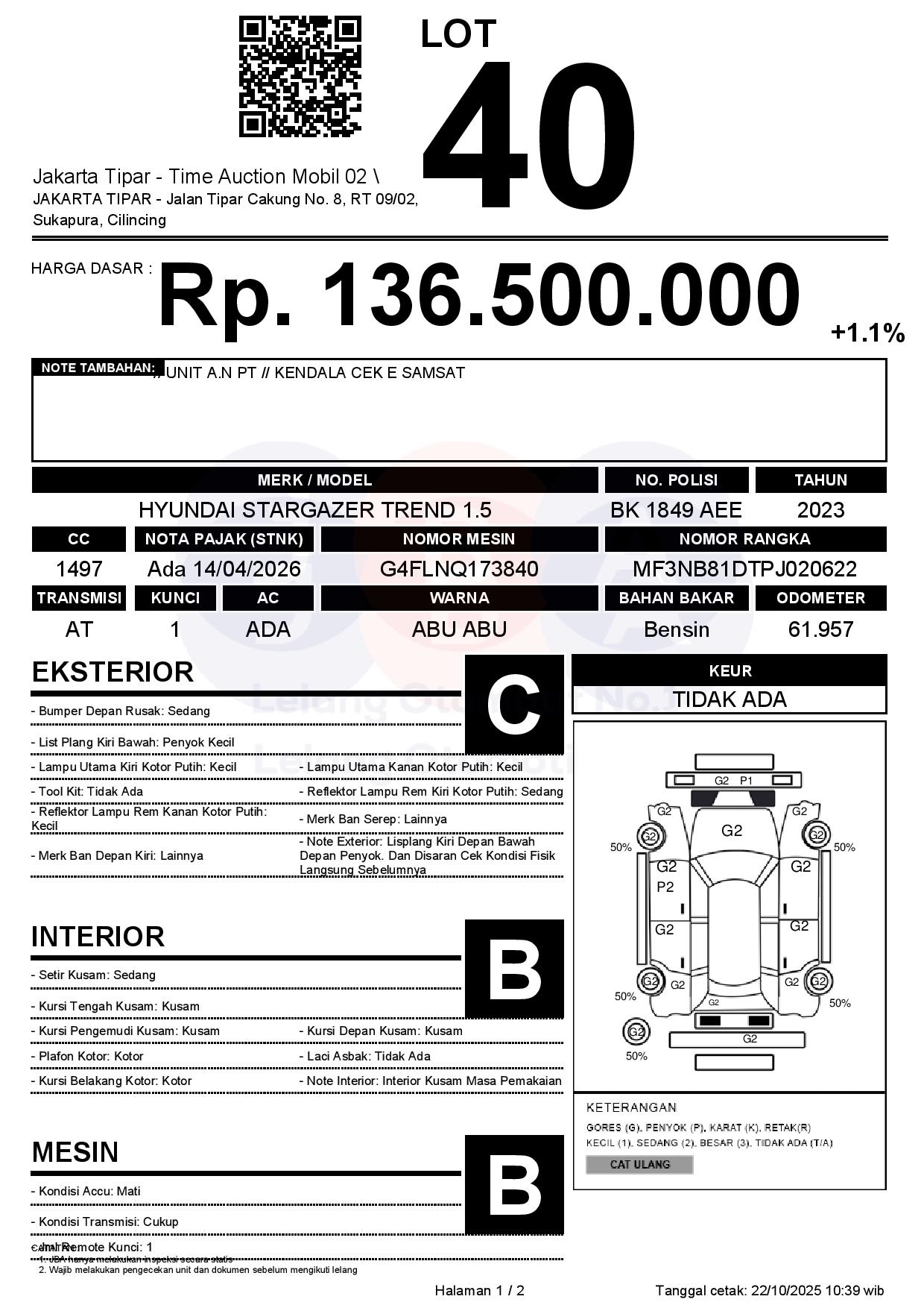 - Harga Awal Rp 136.500.000