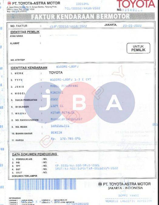 - Atas Nama : PT JBA INDONESIA