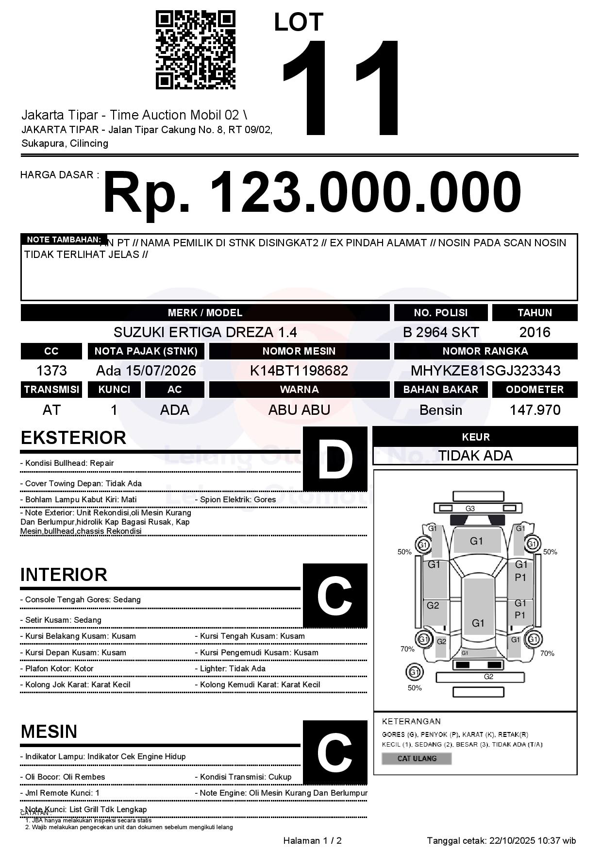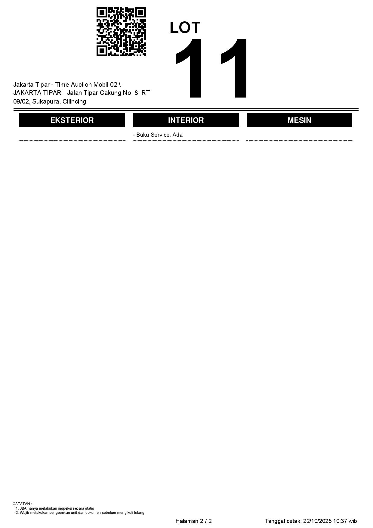 - Kondisi objek lelang dilelang apa adanya, baik kondisi fisik, mesin maupun legalitas kendaraan. Jika terdapat kekurangan/cacat baik yang terlihat maupun yang tidak terlihat, maka semua akan menjadi tanggung jawab/risiko Pemenang Lelang. Oleh karena itu, Pemenang Lelang melepaskan segala hak untuk menuntut dan/atau meminta ganti rugi atas hal tersebut kepada JBA.