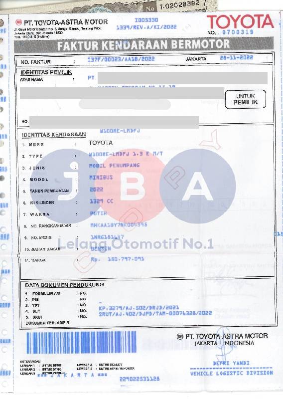 - Kondisi objek lelang dilelang apa adanya, baik kondisi fisik, mesin maupun legalitas kendaraan. Jika terdapat kekurangan/cacat baik yang terlihat maupun yang tidak terlihat, maka semua akan menjadi tanggung jawab/risiko Pemenang Lelang. Oleh karena itu, Pemenang Lelang melepaskan segala hak untuk menuntut dan/atau meminta ganti rugi atas hal tersebut kepada JBA.