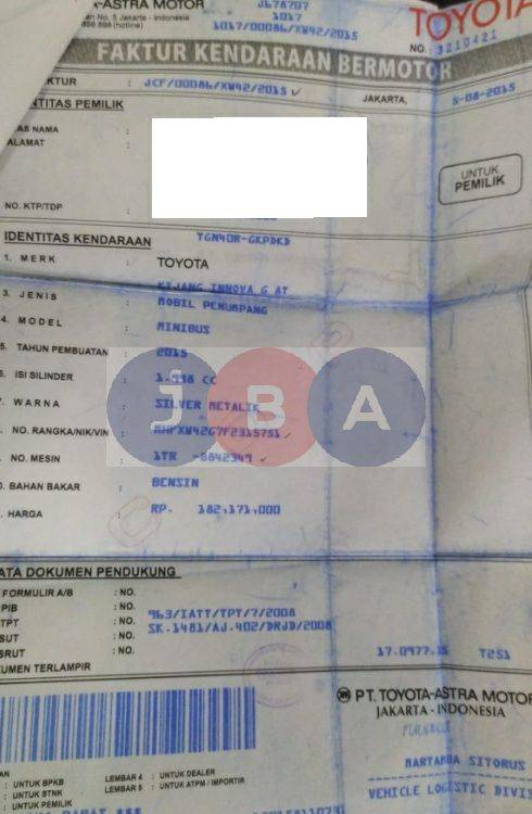 - Atas Nama : PT JBA INDONESIA