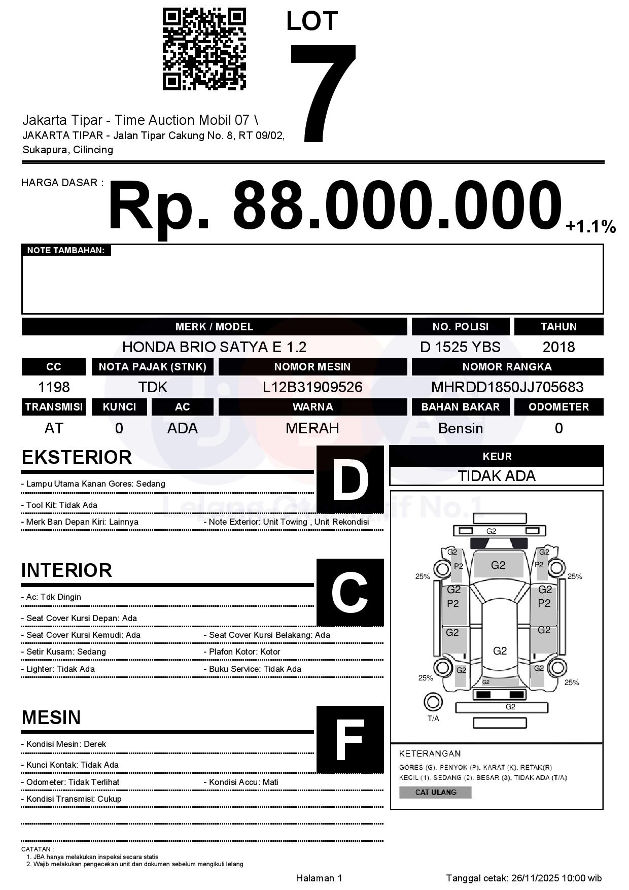 - Kondisi objek lelang dilelang apa adanya, baik kondisi fisik, mesin maupun legalitas kendaraan. Jika terdapat kekurangan/cacat baik yang terlihat maupun yang tidak terlihat, maka semua akan menjadi tanggung jawab/risiko Pemenang Lelang. Oleh karena itu, Pemenang Lelang melepaskan segala hak untuk menuntut dan/atau meminta ganti rugi atas hal tersebut kepada JBA.