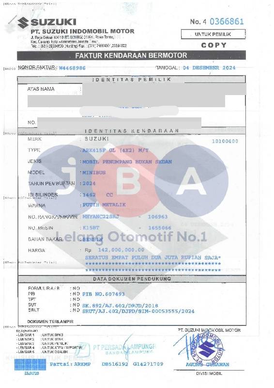 - Kondisi objek lelang dilelang apa adanya, baik kondisi fisik, mesin maupun legalitas kendaraan. Jika terdapat kekurangan/cacat baik yang terlihat maupun yang tidak terlihat, maka semua akan menjadi tanggung jawab/risiko Pemenang Lelang. Oleh karena itu, Pemenang Lelang melepaskan segala hak untuk menuntut dan/atau meminta ganti rugi atas hal tersebut kepada JBA.