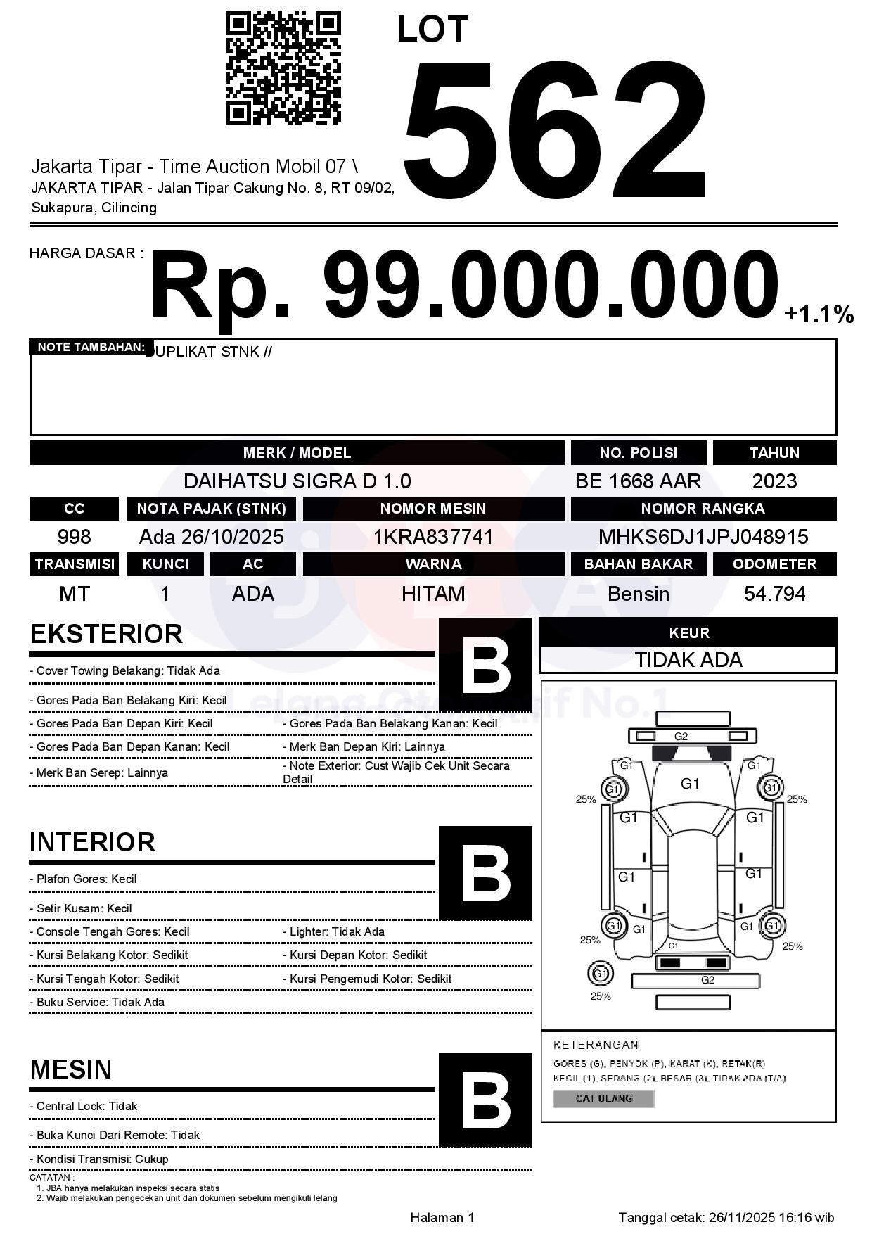 - Kondisi objek lelang dilelang apa adanya, baik kondisi fisik, mesin maupun legalitas kendaraan. Jika terdapat kekurangan/cacat baik yang terlihat maupun yang tidak terlihat, maka semua akan menjadi tanggung jawab/risiko Pemenang Lelang. Oleh karena itu, Pemenang Lelang melepaskan segala hak untuk menuntut dan/atau meminta ganti rugi atas hal tersebut kepada JBA.