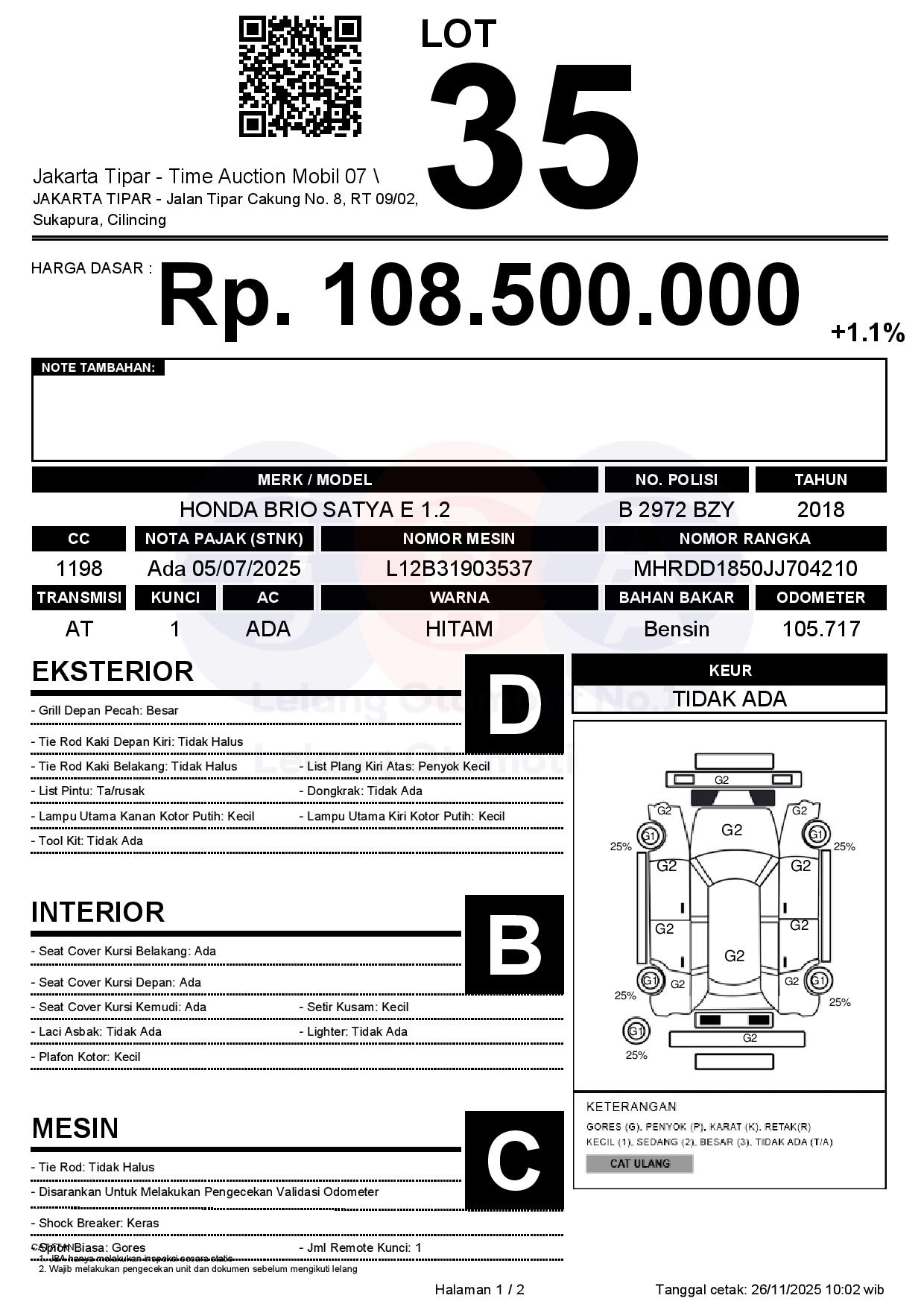 - Harga Awal Rp 108.500.000
