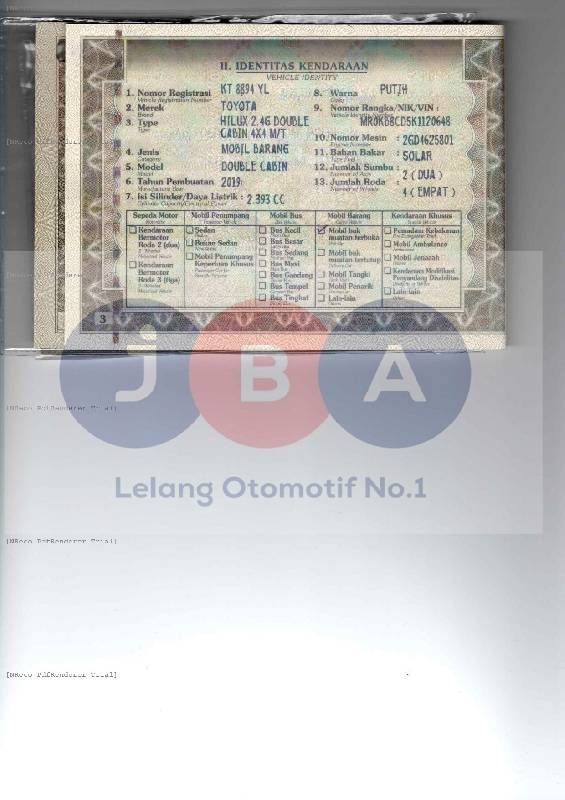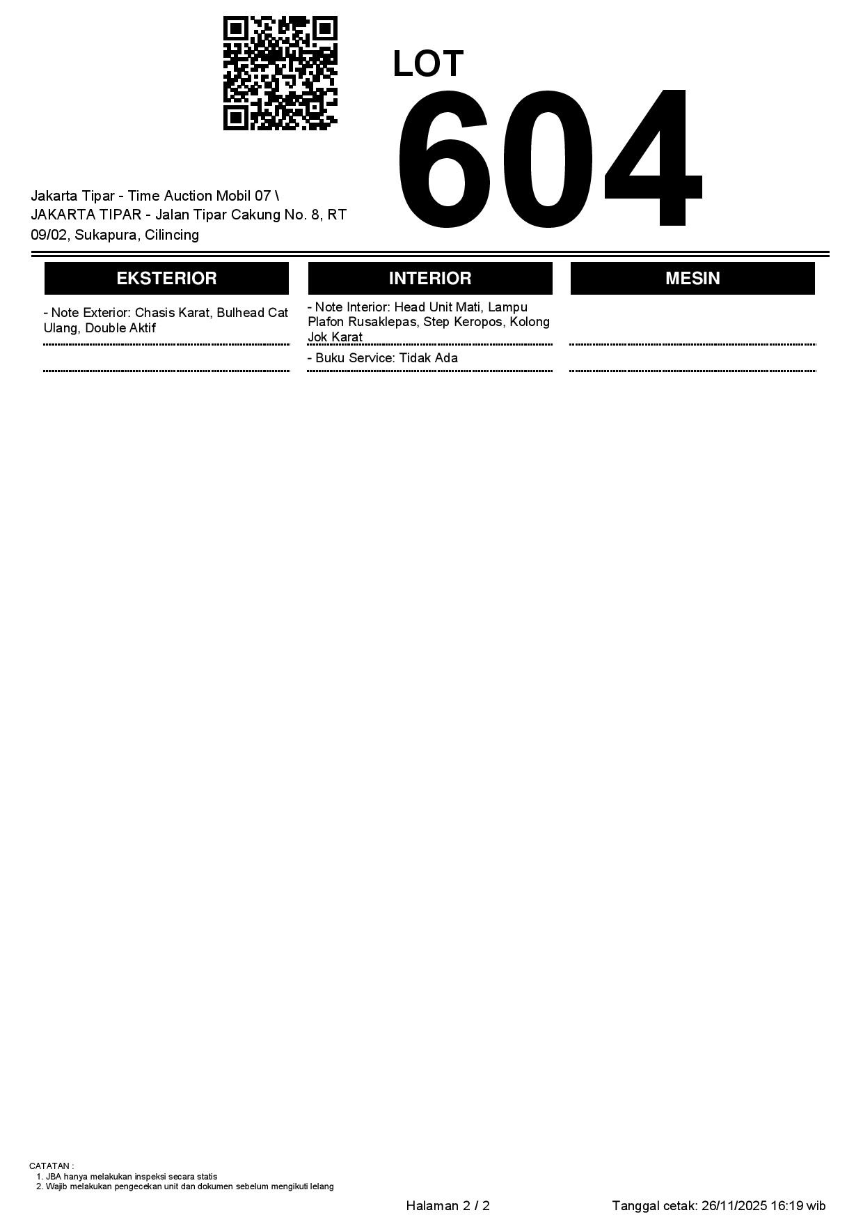 - Kondisi objek lelang dilelang apa adanya, baik kondisi fisik, mesin maupun legalitas kendaraan. Jika terdapat kekurangan/cacat baik yang terlihat maupun yang tidak terlihat, maka semua akan menjadi tanggung jawab/risiko Pemenang Lelang. Oleh karena itu, Pemenang Lelang melepaskan segala hak untuk menuntut dan/atau meminta ganti rugi atas hal tersebut kepada JBA.