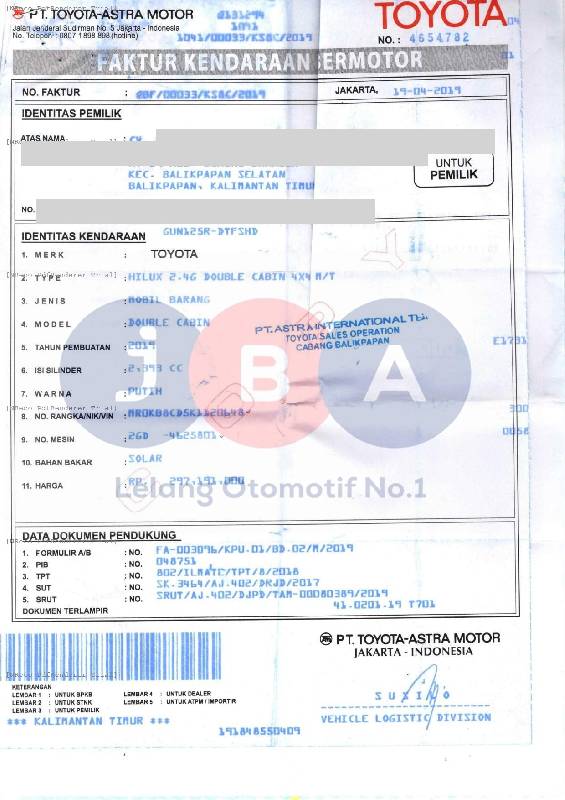 - Biaya pemindahan objek lelang dan pengurusan balik nama pada dokumen kepemilikan merupakan tanggung jawab dan beban dari Pemenang Lelang.