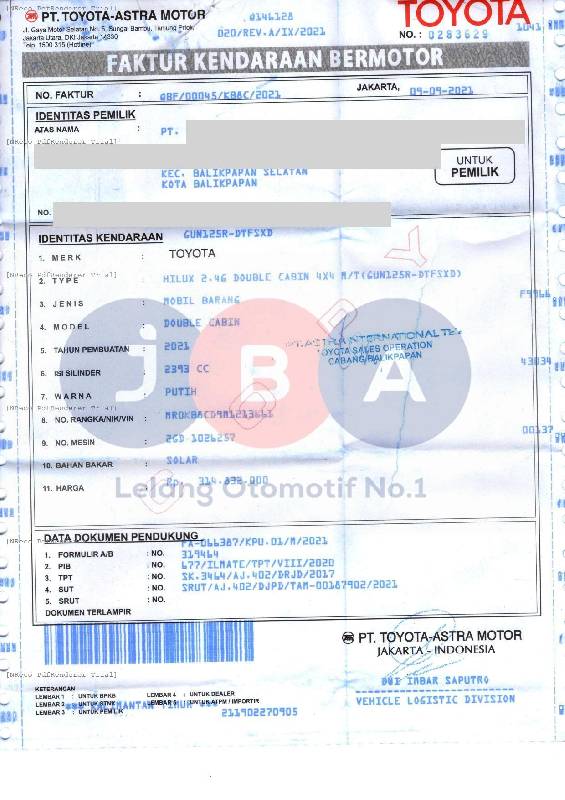 - Kondisi objek lelang dilelang apa adanya, baik kondisi fisik, mesin maupun legalitas kendaraan. Jika terdapat kekurangan/cacat baik yang terlihat maupun yang tidak terlihat, maka semua akan menjadi tanggung jawab/risiko Pemenang Lelang. Oleh karena itu, Pemenang Lelang melepaskan segala hak untuk menuntut dan/atau meminta ganti rugi atas hal tersebut kepada JBA.