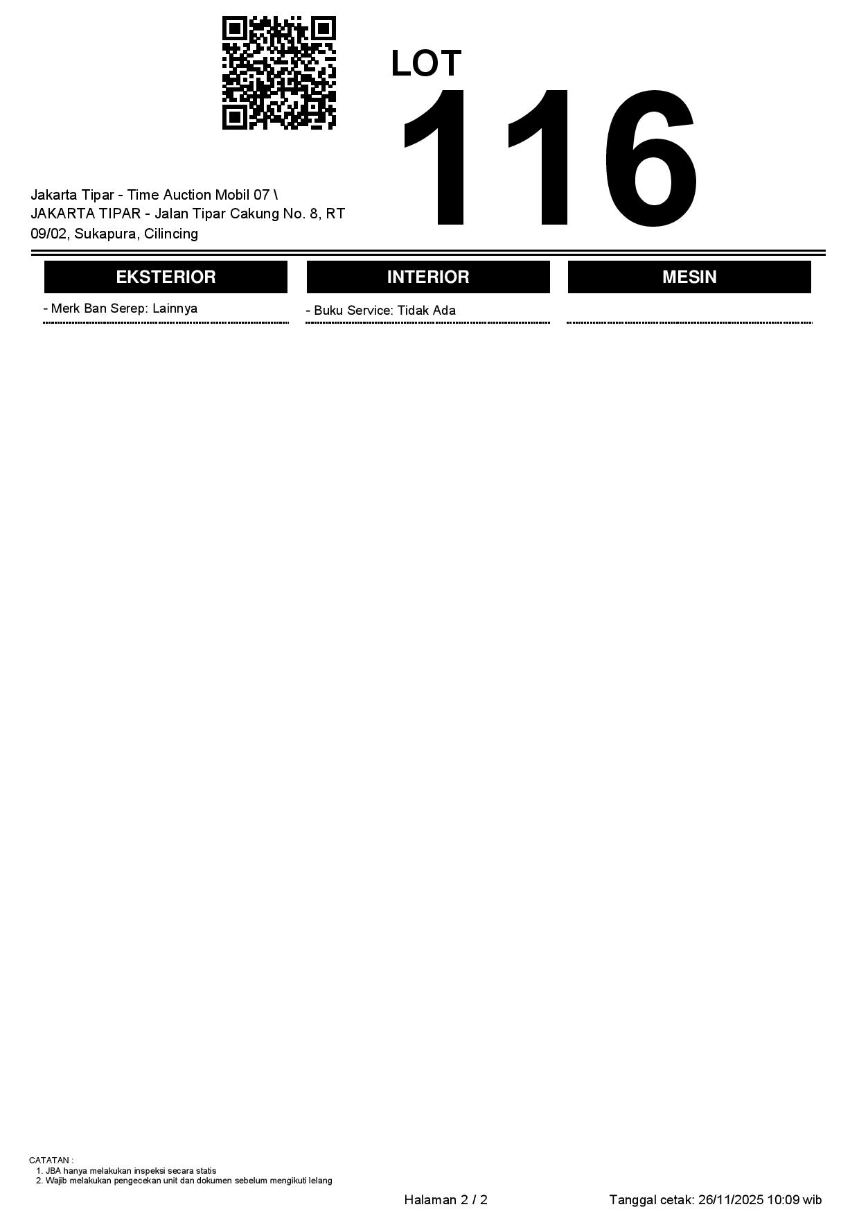 - Kondisi objek lelang dilelang apa adanya, baik kondisi fisik, mesin maupun legalitas kendaraan. Jika terdapat kekurangan/cacat baik yang terlihat maupun yang tidak terlihat, maka semua akan menjadi tanggung jawab/risiko Pemenang Lelang. Oleh karena itu, Pemenang Lelang melepaskan segala hak untuk menuntut dan/atau meminta ganti rugi atas hal tersebut kepada JBA.