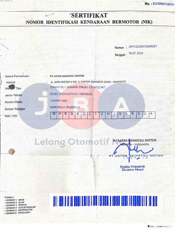 - Atas Nama : PT JBA INDONESIA
