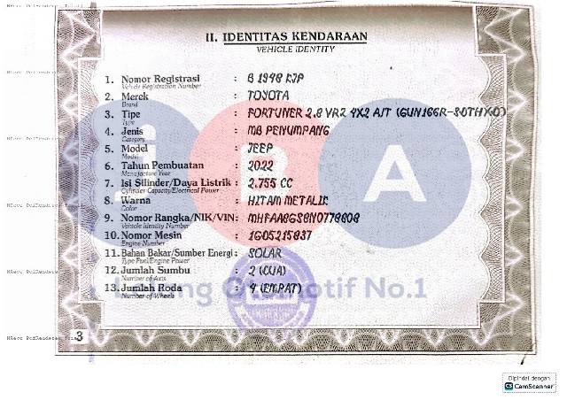 TOYOTA FORTUNER 2.8 VRZ 4X2 HITAM METALIK 2022