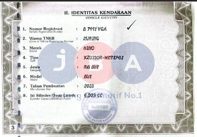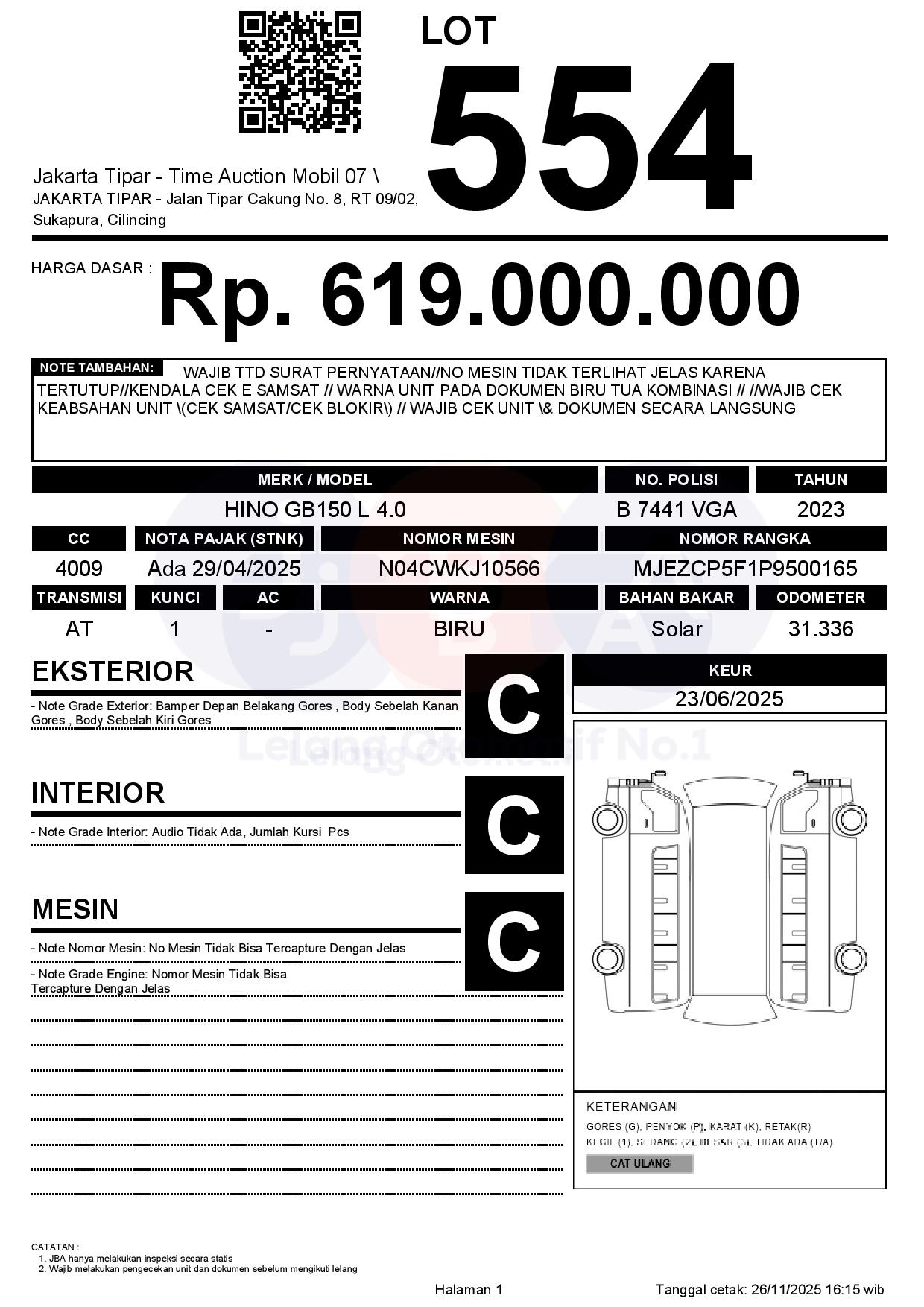 - Kondisi objek lelang dilelang apa adanya, baik kondisi fisik, mesin maupun legalitas kendaraan. Jika terdapat kekurangan/cacat baik yang terlihat maupun yang tidak terlihat, maka semua akan menjadi tanggung jawab/risiko Pemenang Lelang. Oleh karena itu, Pemenang Lelang melepaskan segala hak untuk menuntut dan/atau meminta ganti rugi atas hal tersebut kepada JBA.