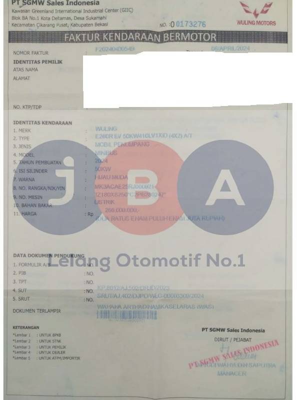 - Kondisi objek lelang dilelang apa adanya, baik kondisi fisik, mesin maupun legalitas kendaraan. Jika terdapat kekurangan/cacat baik yang terlihat maupun yang tidak terlihat, maka semua akan menjadi tanggung jawab/risiko Pemenang Lelang. Oleh karena itu, Pemenang Lelang melepaskan segala hak untuk menuntut dan/atau meminta ganti rugi atas hal tersebut kepada JBA.