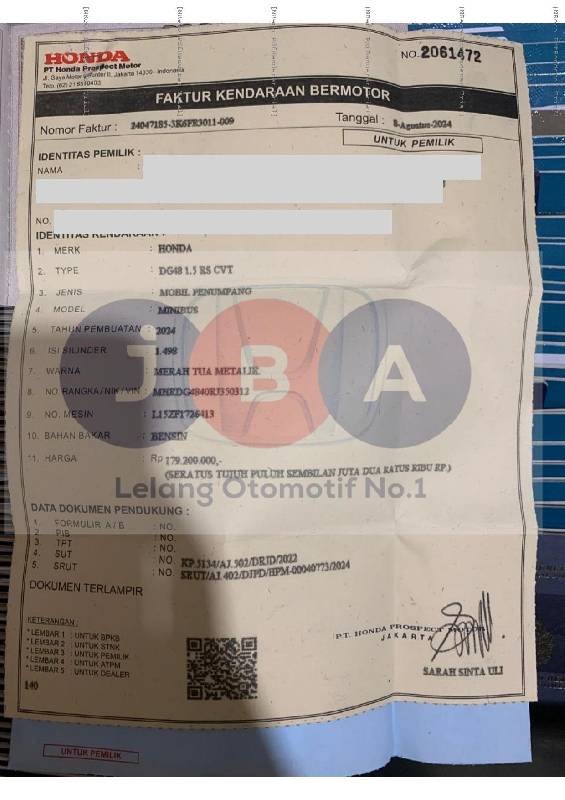 - Biaya pemindahan objek lelang dan pengurusan balik nama pada dokumen kepemilikan merupakan tanggung jawab dan beban dari Pemenang Lelang.