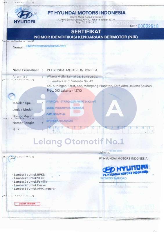 - Dokumen kepemilikan akan diserahkan kepada Pemenang Lelang sesuai dengan jadwal yang tercantum dalam katalog objek lelang, dan Berita Acara Pemenang Lelang (BAPL) akan diberikan oleh JBA kepada Pemenang Lelang setelah pembayaran harga terbentuk atau pada saat pengambilan unit objek lelang.