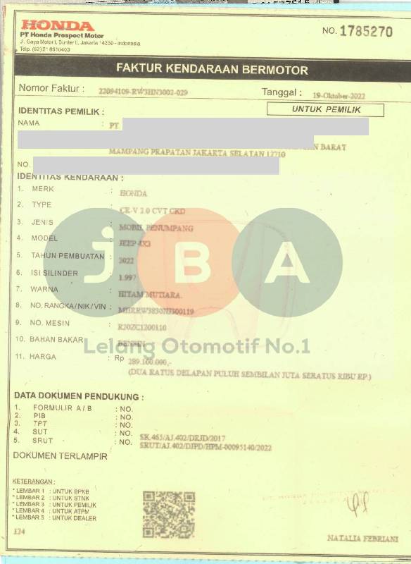 - Biaya pemindahan objek lelang dan pengurusan balik nama pada dokumen kepemilikan merupakan tanggung jawab dan beban dari Pemenang Lelang.