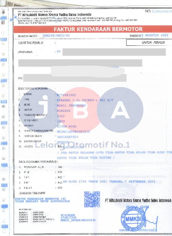 - Atas Nama : PT JBA INDONESIA