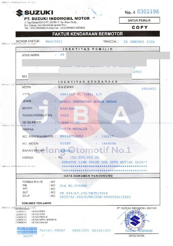 - Atas Nama : PT JBA INDONESIA