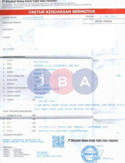 - Kondisi objek lelang dilelang apa adanya, baik kondisi fisik, mesin maupun legalitas kendaraan. Jika terdapat kekurangan/cacat baik yang terlihat maupun yang tidak terlihat, maka semua akan menjadi tanggung jawab/risiko Pemenang Lelang. Oleh karena itu, Pemenang Lelang melepaskan segala hak untuk menuntut dan/atau meminta ganti rugi atas hal tersebut kepada JBA.