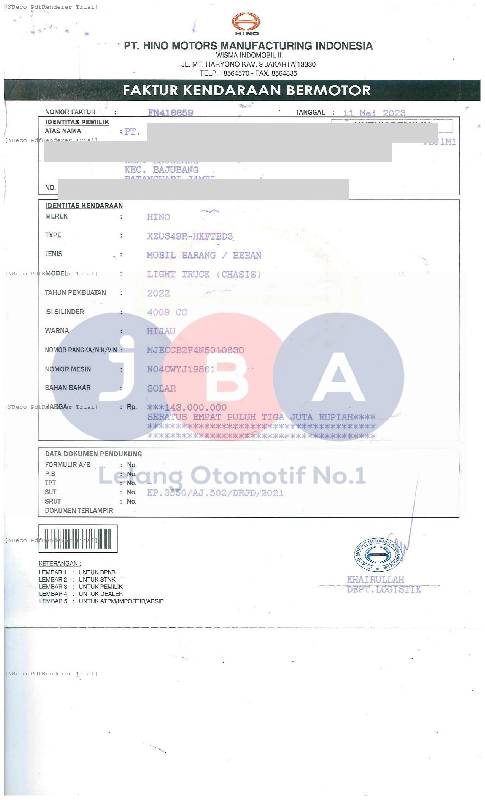 - Kondisi objek lelang dilelang apa adanya, baik kondisi fisik, mesin maupun legalitas kendaraan. Jika terdapat kekurangan/cacat baik yang terlihat maupun yang tidak terlihat, maka semua akan menjadi tanggung jawab/risiko Pemenang Lelang. Oleh karena itu, Pemenang Lelang melepaskan segala hak untuk menuntut dan/atau meminta ganti rugi atas hal tersebut kepada JBA.