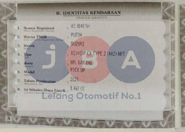 - Kondisi objek lelang dilelang apa adanya, baik kondisi fisik, mesin maupun legalitas kendaraan. Jika terdapat kekurangan/cacat baik yang terlihat maupun yang tidak terlihat, maka semua akan menjadi tanggung jawab/risiko Pemenang Lelang. Oleh karena itu, Pemenang Lelang melepaskan segala hak untuk menuntut dan/atau meminta ganti rugi atas hal tersebut kepada JBA.