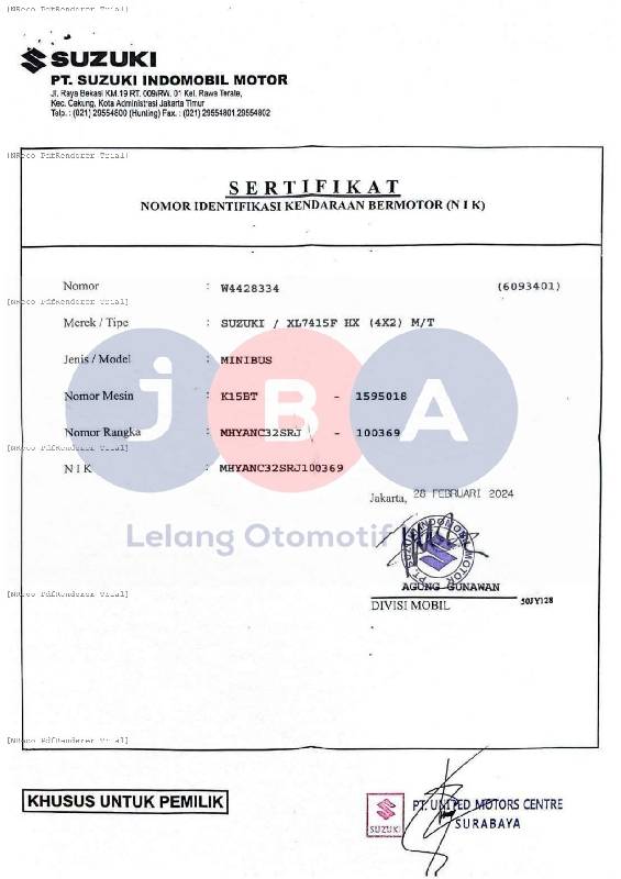 - Dokumen kepemilikan akan diserahkan kepada Pemenang Lelang sesuai dengan jadwal yang tercantum dalam katalog objek lelang, dan Berita Acara Pemenang Lelang (BAPL) akan diberikan oleh JBA kepada Pemenang Lelang setelah pembayaran harga terbentuk atau pada saat pengambilan unit objek lelang.