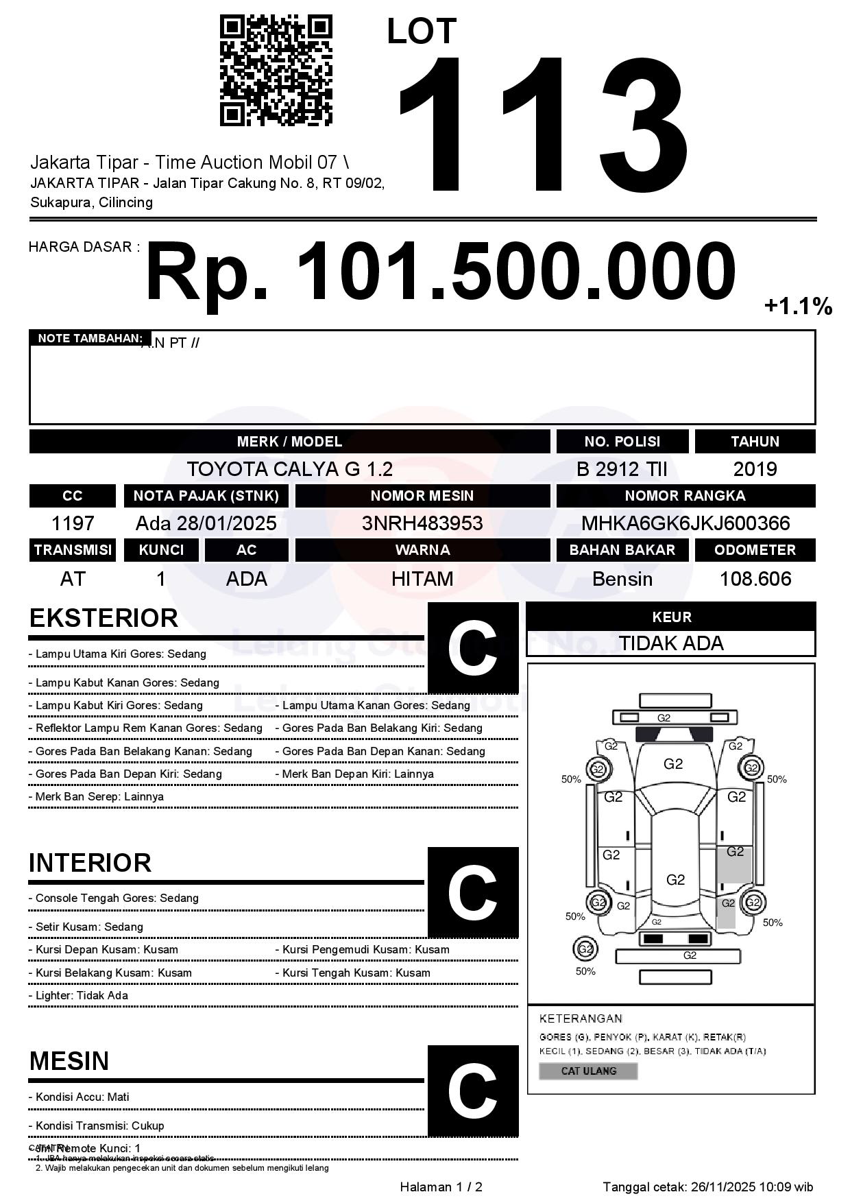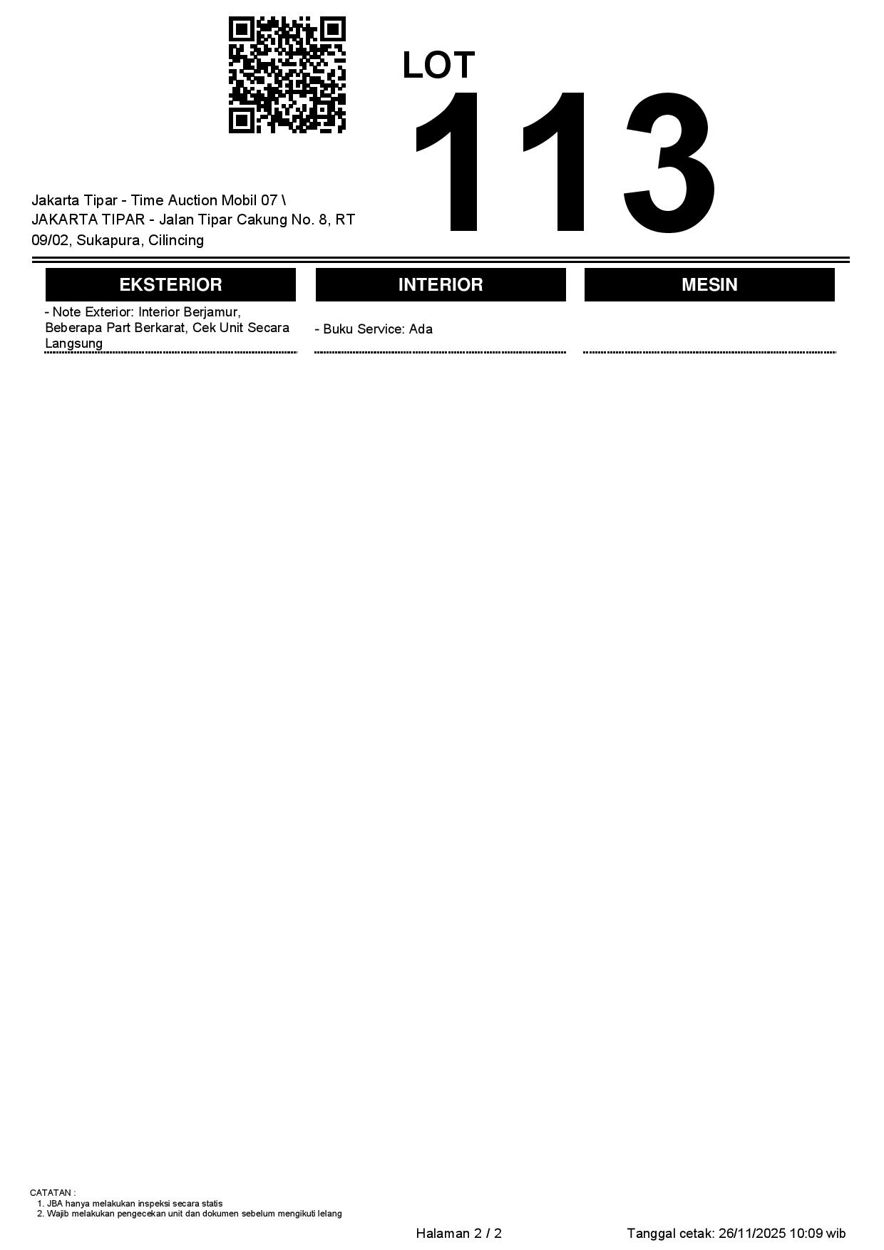 - Kondisi objek lelang dilelang apa adanya, baik kondisi fisik, mesin maupun legalitas kendaraan. Jika terdapat kekurangan/cacat baik yang terlihat maupun yang tidak terlihat, maka semua akan menjadi tanggung jawab/risiko Pemenang Lelang. Oleh karena itu, Pemenang Lelang melepaskan segala hak untuk menuntut dan/atau meminta ganti rugi atas hal tersebut kepada JBA.