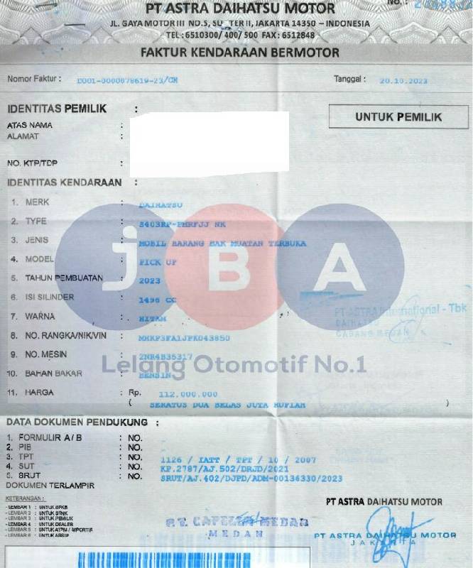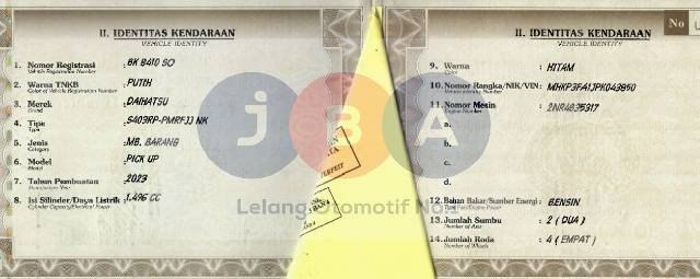 - Kondisi objek lelang dilelang apa adanya, baik kondisi fisik, mesin maupun legalitas kendaraan. Jika terdapat kekurangan/cacat baik yang terlihat maupun yang tidak terlihat, maka semua akan menjadi tanggung jawab/risiko Pemenang Lelang. Oleh karena itu, Pemenang Lelang melepaskan segala hak untuk menuntut dan/atau meminta ganti rugi atas hal tersebut kepada JBA.
