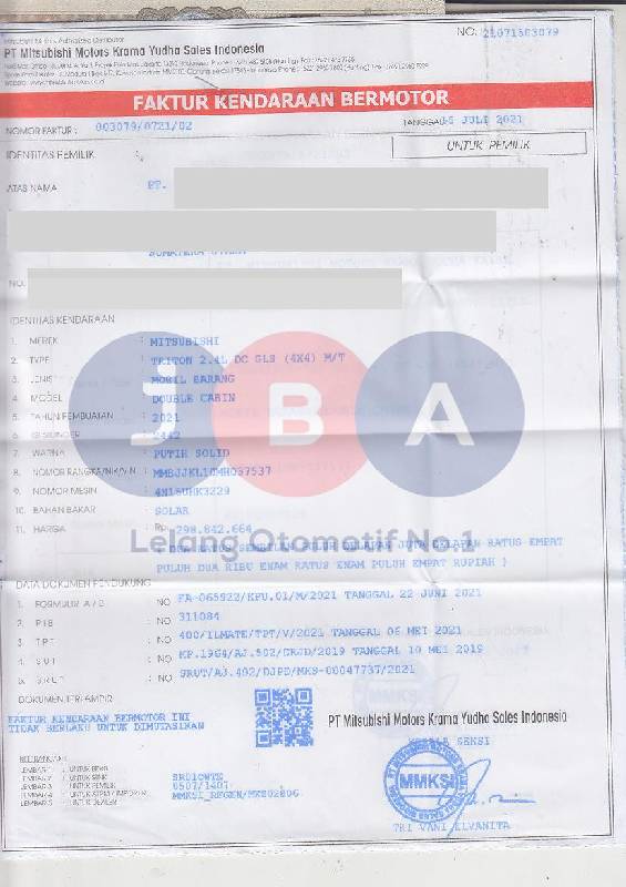 - Atas Nama : PT JBA INDONESIA
