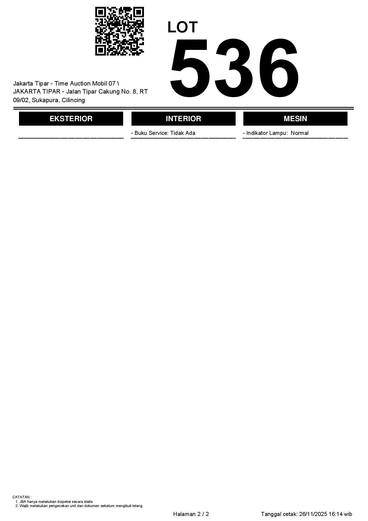- Kondisi objek lelang dilelang apa adanya, baik kondisi fisik, mesin maupun legalitas kendaraan. Jika terdapat kekurangan/cacat baik yang terlihat maupun yang tidak terlihat, maka semua akan menjadi tanggung jawab/risiko Pemenang Lelang. Oleh karena itu, Pemenang Lelang melepaskan segala hak untuk menuntut dan/atau meminta ganti rugi atas hal tersebut kepada JBA.