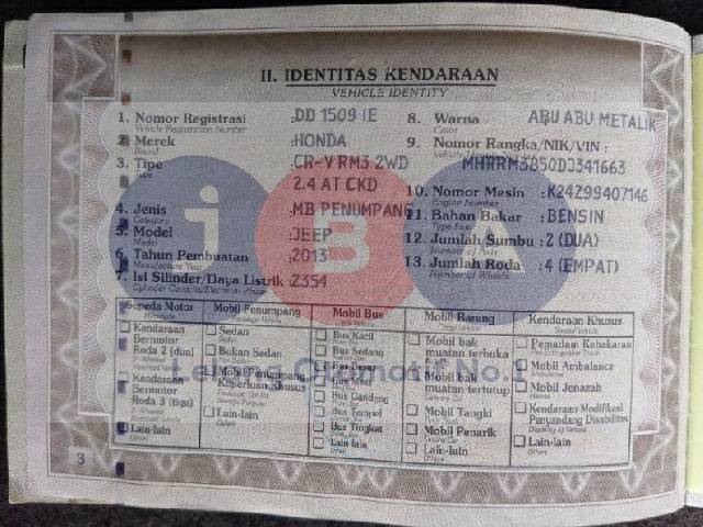 HONDA CR-V RM3 2WD 2.4 ABU ABU METALIK 2013