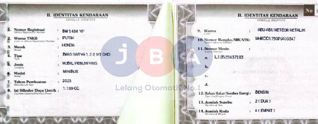 - Kondisi objek lelang dilelang apa adanya, baik kondisi fisik, mesin maupun legalitas kendaraan. Jika terdapat kekurangan/cacat baik yang terlihat maupun yang tidak terlihat, maka semua akan menjadi tanggung jawab/risiko Pemenang Lelang. Oleh karena itu, Pemenang Lelang melepaskan segala hak untuk menuntut dan/atau meminta ganti rugi atas hal tersebut kepada JBA.