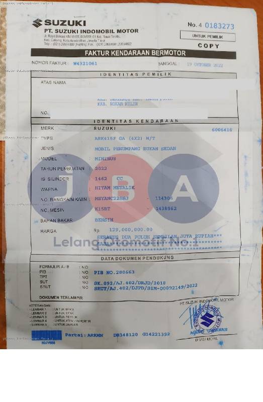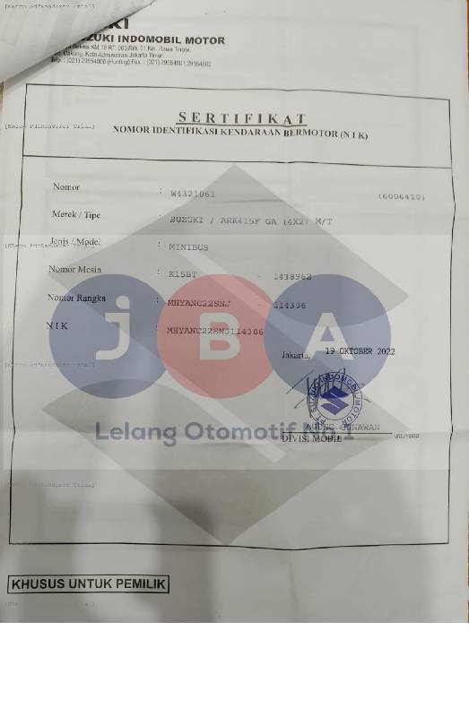 - Kondisi objek lelang dilelang apa adanya, baik kondisi fisik, mesin maupun legalitas kendaraan. Jika terdapat kekurangan/cacat baik yang terlihat maupun yang tidak terlihat, maka semua akan menjadi tanggung jawab/risiko Pemenang Lelang. Oleh karena itu, Pemenang Lelang melepaskan segala hak untuk menuntut dan/atau meminta ganti rugi atas hal tersebut kepada JBA.