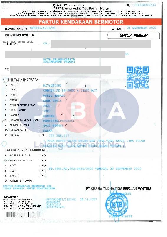 - Biaya pemindahan objek lelang dan pengurusan balik nama pada dokumen kepemilikan merupakan tanggung jawab dan beban dari Pemenang Lelang.